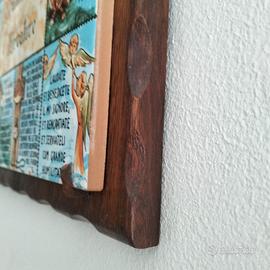 Cantico stampato su piastrella in ceramica su cornice in legno. Misure 21x21