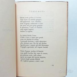 In 8° (16x21 cm), pp. 89 (5) 2 bianche, brossura editoriale, + 1 tavola fuori testo (ritratto dell'Autrice eseguito da Domenico Cantatore). Dedica autografa dell'autrice all'occhietto “a Andrea fratello tanto affettuosamente in ricordo di anni lontani. Nené, Roma 10 aprile ’33”