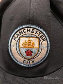 Cap classico british del Manchester City, in tessuto misto acrilico, lana ed elastan, tg M/L, made in China. Lo stemma del club è ricamato in tessuto in rilievo. Sul retro presenta tessuto elasticizzato per la regolazione della misura. Articolo poco usato, originale merchandising store del Manchester City, è in ottime condizioni generali e ben tenuto.