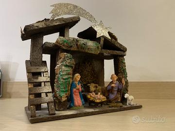 Prodotto italiano provvisto di statuine in resina (altezza 8/10 cm) della Sacra famiglia piu' asinello e bue.