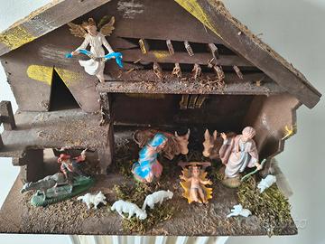 capanna Presepe anni 80 con statuine in plastica.puo avere segni di usura dal tempo