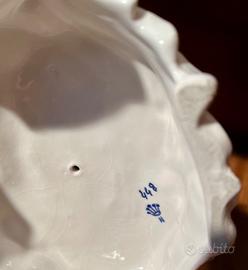 Vendo bellissimo gruppo scultoreo in porcellana di Capodimonte, raffigurante due putti, angioletti alati in un momento di tenera interazione. La scena si svolge su una base lavorata in stile rocaille, impreziosita da fiorellini policromi modellati e dipinti a mano, tipici della raffinata tradizione artigianale napoletana. Sul fondo è presente il marchio che garantisce l’originalità dell’opera. La statuetta misura L15xP12xH16cm. Segnalo un’ala con piccola sbeccatura e un’altra con segno di incollaggio, il tutto come si vede nelle foto. Consegno a mano gratis in Torino oppure spedisco con TuttoSubito.