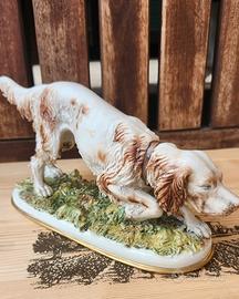 Tema: Un cane da caccia (pointer/setter) in piedi su una base erbosa.