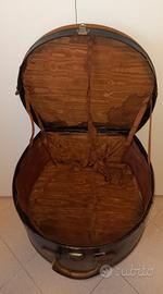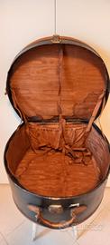 Cappelliera cartone cuoio, nel complesso in buono stato considerati gli anni .Riutilizzabile come oggetto decorativo. Interno in raso è macchiato e in parte scollato,condizioni come da foto, chiusura compromessa ma funzionante.60euro. Visto e piaciuto .non spedisco.