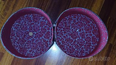 Elegante cappelliera rigida in con finiture curate e chiusura originale. Ideale per conservare con stile cappelli, parrucche o accessori teatrali, oppure da usare come elemento decorativo in un ambiente vintage o shabby chic.