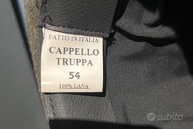 Cappello alpino da truppa, 100% cotone, con fregio, penna e nappina bianca.
