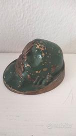 Cappello da Alpino realizzato in miniatura in ottone. Lungo circa 9 cm, altezza massima circa 5-6 cm. Buone condizioni, vintage!