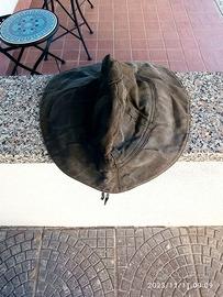 originale raro ex ordinanza marina militare sommergibilisti tipico cappello in pesante twill di cotone cerato e gommato antipioggia per servizi in coperta con soggolo permette il deflusso della acqua alle spalle periodo seconda guerra mondiale???