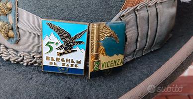 cappello da Alpino S.ten dell' artiglieria da Montagna anni '70 circa con spille e penna di corvo interno marcato presenti segni di tarmatura