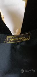 Copricapo appartenuto a una prozia, risale alla fine degli anni '30. Di manifattura parigina mostra un insieme di fiori e foglioline tipo ortensia. Il cordino a fiocco è parecchio rovinato a causa degli anni trascorsi. L interno è profilato in velluto nero, ben conservato e come nuovo, segno che è stato usato pochissimo.