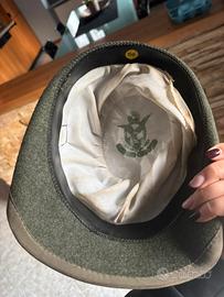 Vendo cappello militare alpino originale in feltro verde, modello vintage con fregio ricamato raffigurante aquila sul fronte.