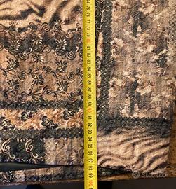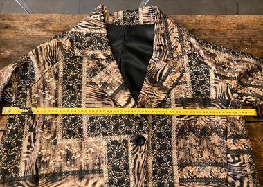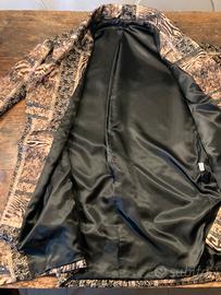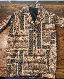 Elegante cappotto a uovo realizzato in lana, con un'originale fantasia patchwork. Misure : lunghezza 100 cm, larghezza ascella 67 cm. Tessuto : lana 80%, poliestere 20%, fodera in acetato e viscosa. - Made in Italy - Fantasia patchwork con motivi animalier e decorativi