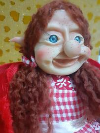 Elfo in porcellana fredda e stoffa,realizzata a mano. Raffigura cappuccetto rosso in versione elfo.
