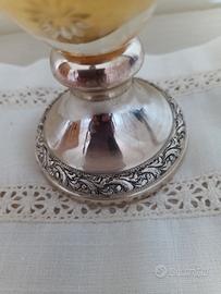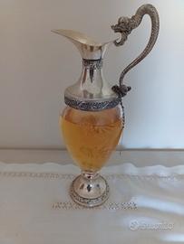 Vendo splendida caraffa vintage originale BUTON per “Crema Cacao”, risalente agli anni ’60 circa. La bottiglia è in vetro decorato con montatura in metallo argentato, realizzata da Argenterie Galbiati (Milano), come da marchio sul fondo. Completa di targhetta originale e tappo. Ancora presente il liquore originale (non destinato al consumo, oggetto da collezione o arredamento). Condizioni ottime per l’età: normali segni vetro integro senza crepe. Oggetto molto elegante, ideale per collezionisti o come elemento d’arredo vintage.