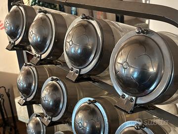 16 giare in vetro soffiato e coperchio ribaltabile in metallo cromato
