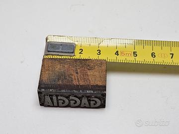 Piccolo stampo carattere tipografico con scritta logo Gaggia. Legno e piombo.