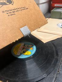 un fonografo di cartone economico e portatile progettato per riprodurre dischi a 78 giri/min che contengono