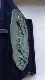 A causa del tempo il metallo della placca, ha formato tonalità sul verde scuro (ossidazione) che conferma il valore storico dell'oggetto stesso.