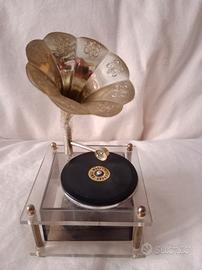 piccolo gioiello carrilon a grammofono con musica 'One more Yesterday ' funzionante misure cm8.50x8.50 x 17 altezza circa.