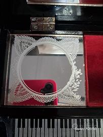 Funzione: Oltre ad essere un bellissimo pezzo d'arredo, l'interno funge da portagioie, con uno specchio e un comparto foderato in velluto rosso.