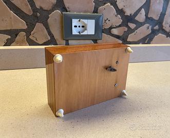 Carillon porta, gioia in legno laccato in condizioni eccellenti. Meccanismo perfettamente funzionante e suona la melodia dec “Torna a Surriento”. Misura 15 cm di larghezza 11 cm di profondità e 6 cm in altezza.