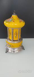 carillon portasigarette Reuge, doppia melodia (una in apertura e l'altra in chiusura degli sportellini) perfettamente funzionante, senza rotture/scheggiature etc. Magnifico ed insolito con la sua colorazione gialla.