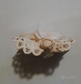 Carillon vintage raro a forma di angelo con ali ricamate, con abito color bianco ricamato a mano, coroncina di perle bianche in testa.