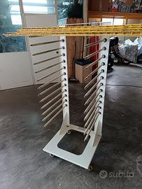 Carrelli porta pellame in ferro e legno (n°3 Pezzi)e carrello a ripiani per prodotti dopo incollaggio o semplicemente per riporre prodotti fatti in serie.