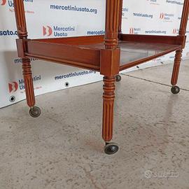 Carrellino con cassetto in stile. Struttura in legno tornito. In buone
