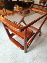 Splendido carrello bar di produzione italiana, risalente agli anni '50/'60, esempio eccellente di design Mid-Century Modern. Il pezzo è caratterizzato da linee organiche e fluide, tipiche della scuola di Cesare Lacca o delle eccellenze manifatturiere tipo Cassina.