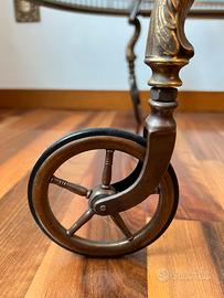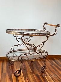 Stupendocarrello portavivande/bar vintage a due livelli pesante in ottone pieno, finemente lavorato, un pezzo d'arredamento unico e di grande fascino. Ideale per aggiungere un tocco dieleganza Hollywood Regencyobarocco italianoalla tua casa o al tuo locale.