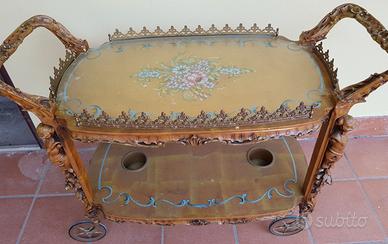 vendo Carrello bar portavivande vintage con intarsi e fregi lavorati mis. 105x50 SPEDISCO IN TUTTA ITALIA CON CORRIERE PACCO TRACCIABILE PREZZO APPENA ULTERIORMENTE SCONTATO E RIBASSATO