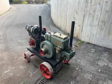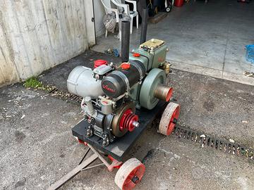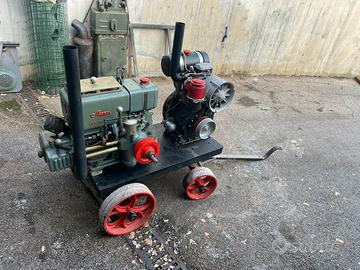 Vendesi carrello in ferro, con ruote in fusione come da foto, con motori storici Slanzi DO 5 cavalli a VASCA con volano esterno e DVA 500 7,5 cavalli raffreddamento ad aria forzata.
