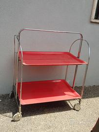 Carrello di servizio bar, trolley pieghevole con ruote anni ’60-70,