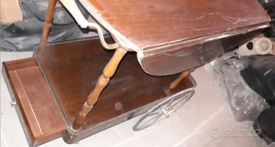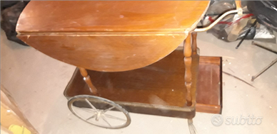 Carrello vintage portavivande bar antico in legno tavolino anni 50 con ruote ottone.