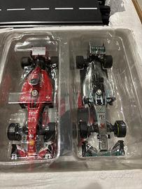 Pista con macchine incluse come da foto, mai utilizzata, ma datata. Montata solo per verifica funzionamento. In caso di necessità posso inviare video della pista montata. Confezione un po’ rovinata, pista in perfette condizioni, plastiche con accessori all’interno ancora sigillate Prezzo trattabile