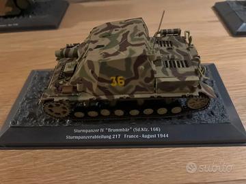 Splendidi modellini di carri armati della seconda guerra mondiale: battaglia di Francia 1940 - Char B1 bis 1940 francese; Sturmpanzer IV Brummbar (Sd.Kfz. 166) tedesco e M10 francese della battaglia di liberazione, a seguito dello sbarco degli alleati in Normandia nel 1944.