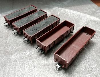 Marchio: LIMA Scala: H0 Compagnia dei treni: FS Produzione: Made in China Usati ma in buone condizioni, in uno dei carri con carbone un respingente è rotto (vedi foto). Set composto da: - n°3 LIMA HL6016 con carbone, Epoca III; - n°1 LIMA HL6016, Epoca III; - n°1 LIMA 21 RIV 83 FS 4460 100. Preferisco una vendita in blocco. Mi trovo a Scandiano (RE), do priorità a persone che possono ritirare direttamente, spedizione da valutare. Ho altri annunci di materiale fermodellistico.