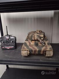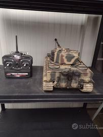 Carro armato RC TORRO 1/16 Tiger versione IR, con scafo inferiore in metallo, ingranaggi in metallo, montanti in metallo, dotato di sistema di battaglia, in ottime condizioni e perfettamente funzionante, completo di radiocomando, batteria, caricabatterie, manuale delle istruzioni, scatola di imballaggio.