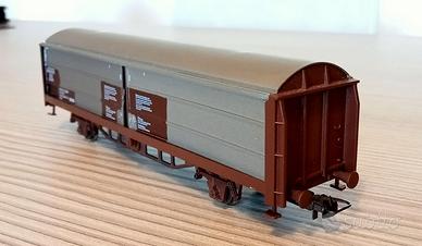 Splendido carro chiuso a pareti scorrevoli (amministrazione ferroviaria OBB) tipo HBIS della LIMA (Made in Italy), con scatola di imballaggio - N.B. la scatola di imballaggio non è originale del modello, ppichè riporta un altro codice di articolo. La scatola stessa contiene e protegge perfettamente il modello. Il carro ha l'aggancio a norma NEM 362 e timone di allontanamento. Scala H0. Il carro è praticamente nuovo, in ottimo stato e tenuto benissimo, così come visibile in foto. Sono escluse le spese di spedizione, che restano a carico del destinatario.