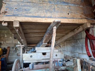 Il carro è in buonissime condizioni realizzato artigianalmente nel 1955, misura: ruota grande diametro 130 cm, ruotino 75 cm, largo 125 cm, lungo 200 cm, pianale 180 cm, lunghezza timone 400 cm, prezzo trattabile. L'oggetto si trova a Fabriano (AN)
