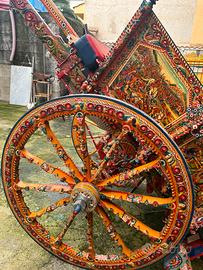 Vendo splendido carretto siciliano tradizionale, interamente decorato e dipinto a mano da maestro artigiano e pittore d’arte siciliana F.P Cardinale e costruito da Giovanni R.AIA. Un pezzo unico, ricco di dettagli e scene tipiche della tradizione siciliana.