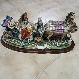 Carrozza con cavalli in ceramica Capodimonte dell'artista Raffaello Bedin. Misure: lunghezza 78 cm. - larghezza 30 cm. - altezza 34 cm. Solo consegna a mano, visto e piaciuto. Prezzo non trattabile