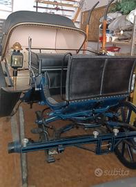 Carrozza Vittoria primi del 900 in duplex (stanghe per un cavallo solo e timone per pariglia) con capote richiudibile. Gommata, no cerchioni. Completamente ristrutturata, ralla compresa.