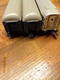 Gruppo di tre carrozze passeggeri della Lima italia, scala H0, cedo e spedisco. ottime condizioni assali in metallo. prezzo per il tutto 28 euro.
