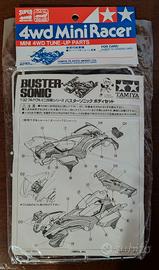 Ricambio per mini4wd originale Tamiya nuova chiusa nella sua confezione. Carrozzeria Buster Sonic Blu Metallic made in Japan 1998.