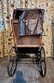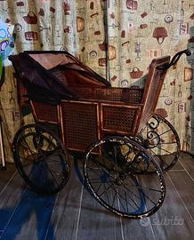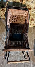 Vendo carrozzina/passeggino fine 800 in paglia di vienna,ruote in ferro,capottina in pelle leggermente scucita.Consegna a mano.