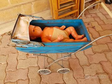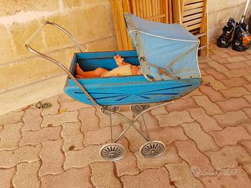 Carrozzina giocattolo in latta Couplex Belgium anni 60...uno strappo di lato alla cappottina