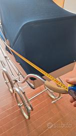 Vendo carrozzina d'epoca marca Guizzardi, originale italiana degli Anni '70. La struttura in metallo cromato e le grandi ruote a raggi sono in buone condizioni. Questo pezzo vintage presenta i normali segni del tempo che ne confermano l'autenticità. Ideale per collezionisti o esposizioni. Misure in foto e a richiesta
