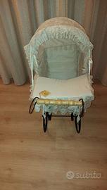 Carrozzina Vintage rf Collection Stile Antico in cesto in vimini, interamente rivestita in pizzo.